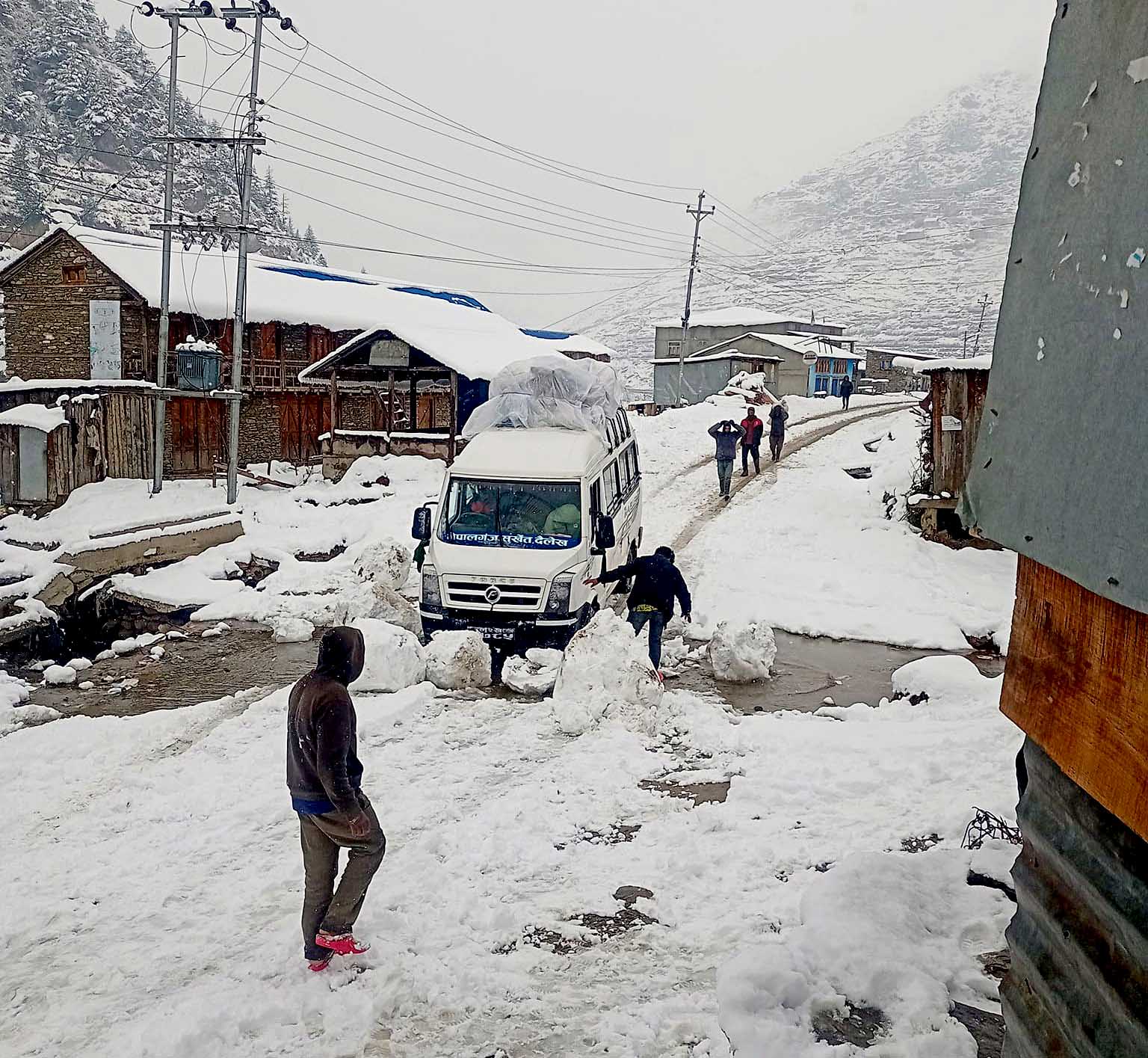 कर्णाली प्रदेश सरकारका आन्तरिक मामिला तथा कानुन मन्त्रालय विपद् शाखाका प्रमुख कृष्णबहादुर रोकायले जल तथा मौसम विज्ञान विभागका अनुसार सुदूरपश्चिम, कर्णाली र गण्डकी प्रदेशका उच्च पहाडी तथा हिमाली भू–भागका केही स्थानमा भोलिसम्म हिमपातको सम्भावना रहेको सूचनाबमोजिम यहाँका नागरिकलाई आवश्यक सावधानी तथा सतर्कता अपनाउन अनुरोध गरिएको बताउनुभयो । (रासस)