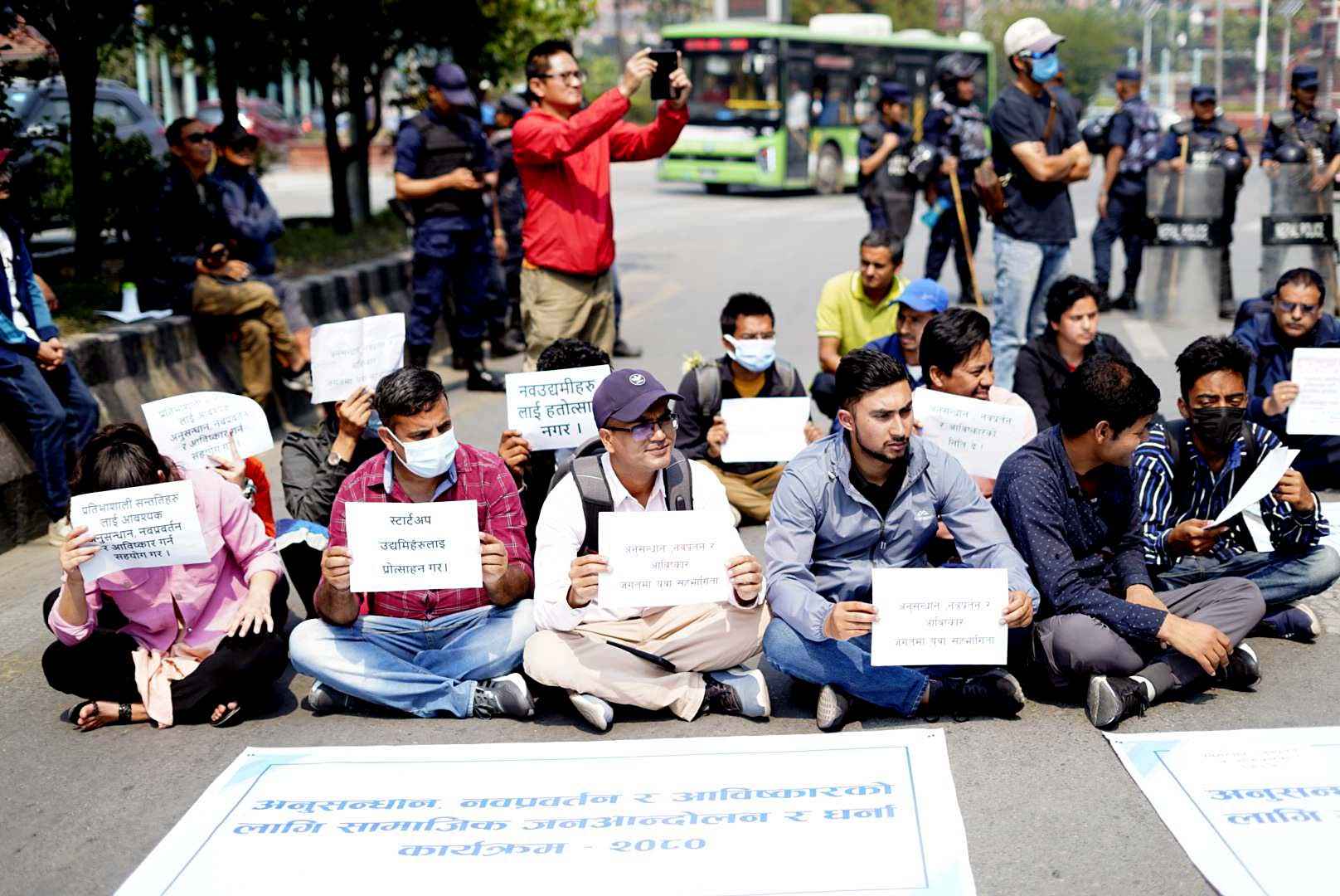 आविष्कारका क्षेत्रमा काम गर्न माग गरिएका विभिन्न प्लेकार्ड बोकेका समर्थक सहित माइतीघरबाट नयाँबानेश्वर जाने सर्भिस लेनलाई बन्द गरेर धर्ना कार्यक्रम भैरहेको छ।